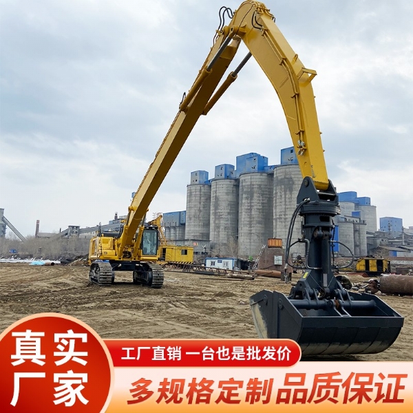 正是因?yàn)橥诰驒C(jī)的標(biāo)準(zhǔn)臂長(zhǎng)度不能滿足某些工作場(chǎng)合,所以越來(lái)越多挖掘機(jī)都采用加長(zhǎng)臂來(lái)填補(bǔ)這片空白,如深坑作業(yè)的地基工程,高空作業(yè)的樓房拆卸或河道清理等領(lǐng)域的建設(shè)和維護(hù)等,都必須用到加長(zhǎng)臂才能高 效快捷地完成工程要求的各項(xiàng)指標(biāo)。城市的不斷擴(kuò)張,老舊城區(qū)的拆遷。政府出于安全的考慮,對(duì)相對(duì)較低樓層不進(jìn)行爆破拆除,而選擇了三段加長(zhǎng)臂進(jìn)行拆除。三段加長(zhǎng)臂在原有的兩段加長(zhǎng)臂的基礎(chǔ)上面加了一段中臂。中臂可以在很大的程度上面能夠保護(hù)司機(jī)的安全。三段式加長(zhǎng)臂都是帶錘或者液壓剪進(jìn)行工作。