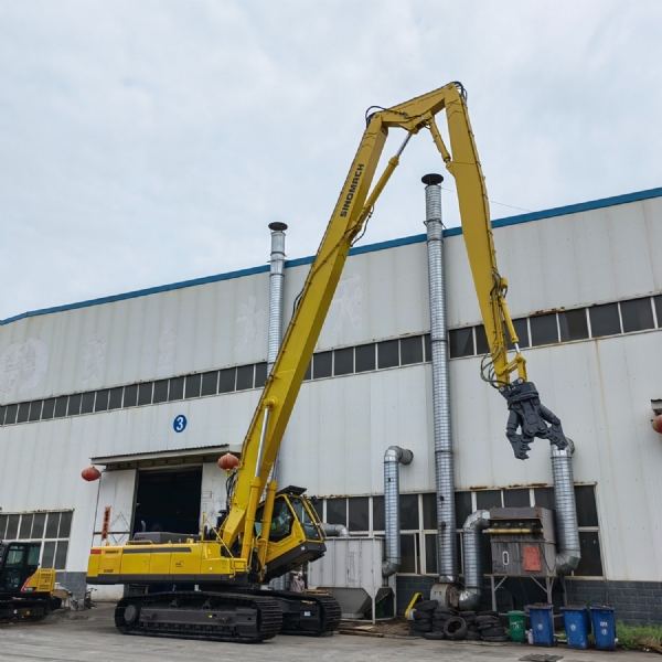 三節(jié)臂是為延長挖掘機工作范圍根據(jù)工況要求而設(shè)計制造的挖掘機前端工作裝置,不改變原有挖掘機的使用性能,采用高強度合金板制造,極大提高作業(yè)范圍,工作范圍 13米-30米挖掘機加長臂使用范圍較廣、功能較多,其本具有挖掘、破碎、清鉤、鉆孔、推土等功能,從某種角度上來說切實的實現(xiàn)了一機多用的功能。挖掘機三節(jié)臂提升了挖掘機的機械化程度,機身 360°無壓力旋轉(zhuǎn)更是為設(shè)備的后續(xù)施工提供了便捷,此外該設(shè)備能夠在一些相對狹小的區(qū)域內(nèi)工作,更是增加了施工的便利性。